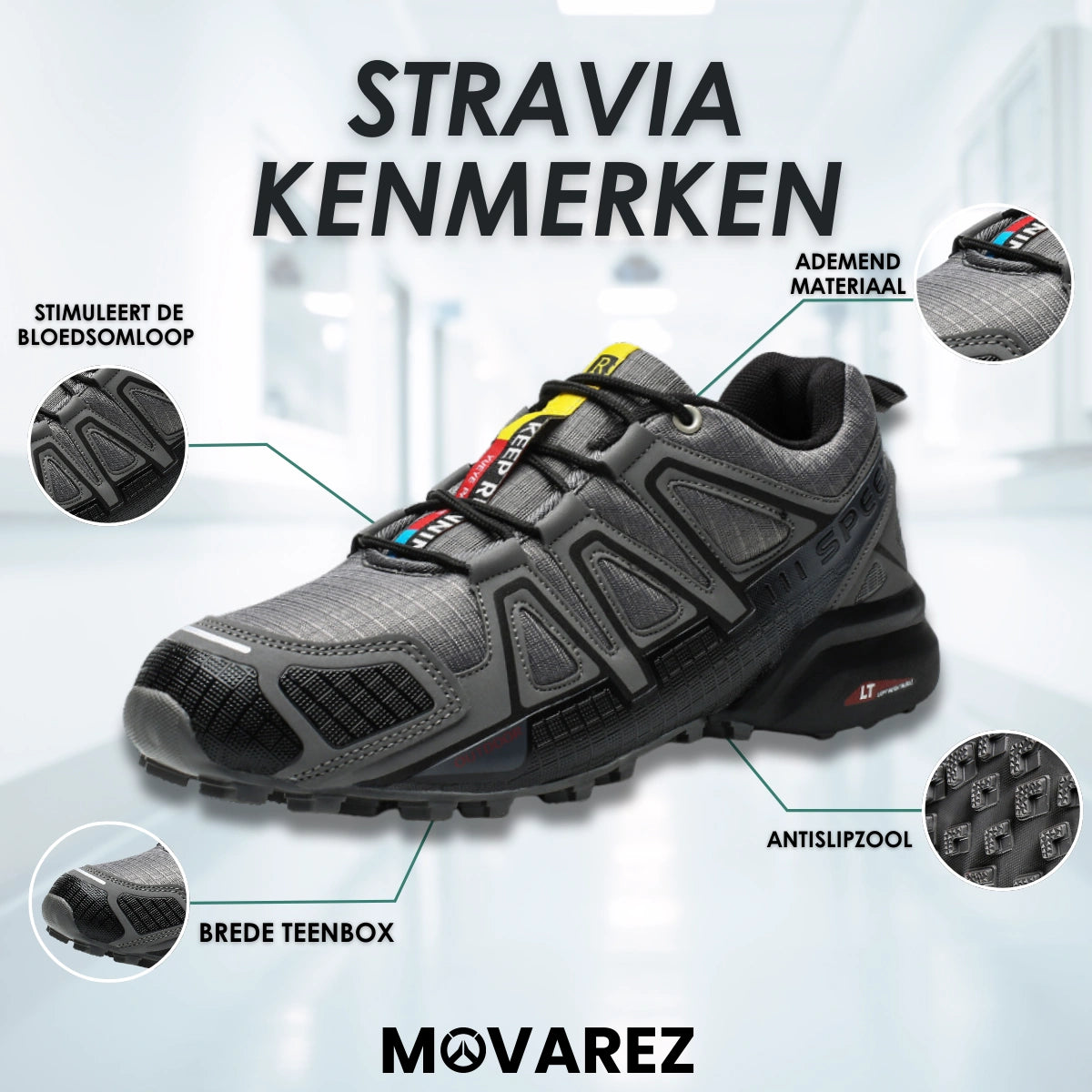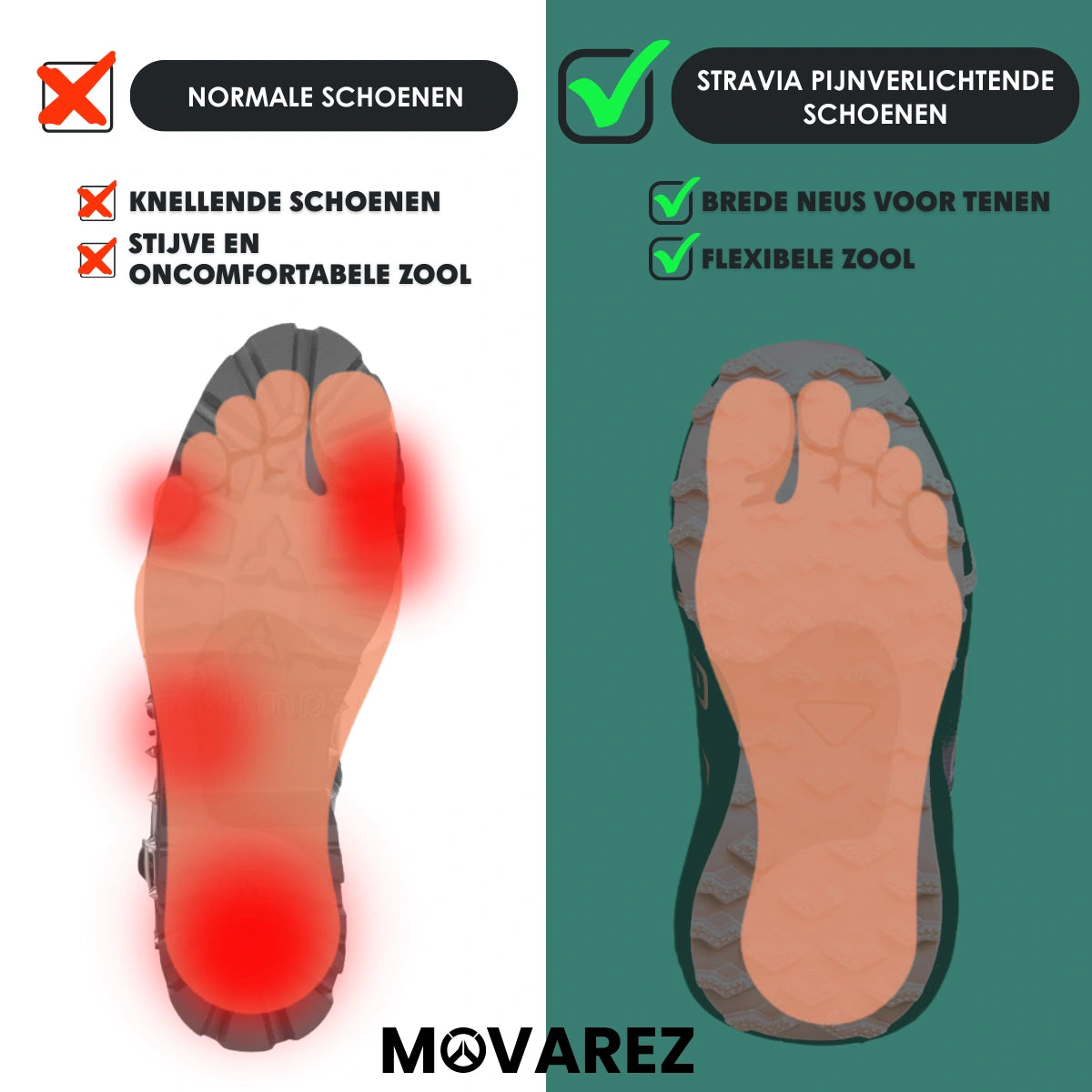 Stijve zolen en slecht ontworpen schoenen dwingen je voeten in onnatuurlijke posities. Dit leidt niet alleen tot pijn aan voeten, knieën en rug, maar ondermijnt ook je houding, energie en zelfvertrouwen. Daarom is er nu Stravia de hybride wandelschoen die voelt als vrijheid, maar ondersteunt als een professional.