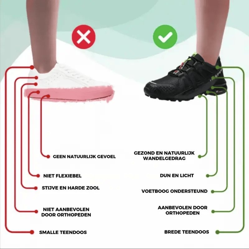✓ Brede teenbox & anatomische voetboog - Voorkomt knelling, verbetert de houding en versterkt je balans. Geen gekrompen tenen of instabiliteit meer, enkel natuurlijke kracht en vrijheid.